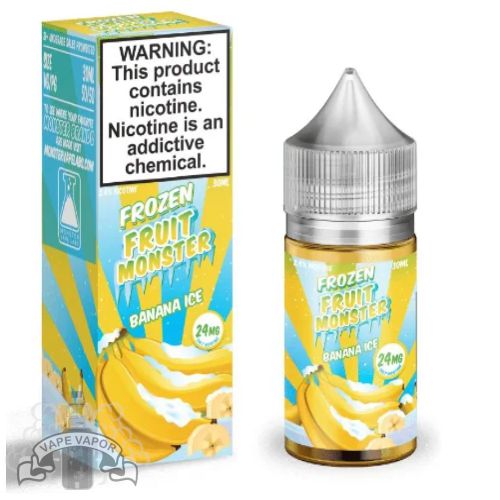 Banana Ice: Frozen Fruit Monster é um verão gelado em uma garrafa. Banana Ice é uma explosão legal do seu sabor favorito para dar a você aquele sabor vivo e refrescante como um smoothie congelado em um dia de verão; enquanto você inala Banana Ice, bananas geladas formigam cada papila gustativa enquanto seu sabor açucarado o envia para o paraíso. A banana gelada dá aquele sabor doce que é verdadeiramente edificante